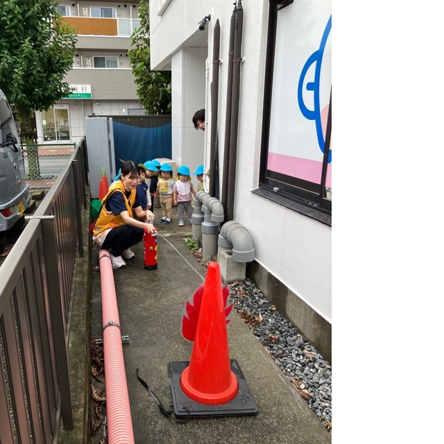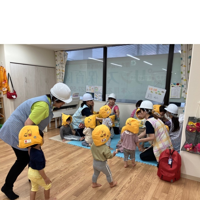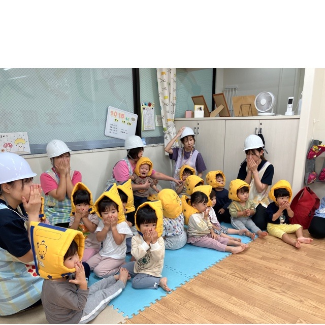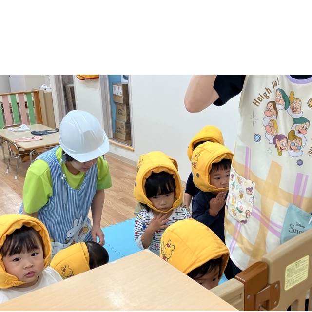 防災頭巾もしっかり被り、安全対策もバッチリですね😊