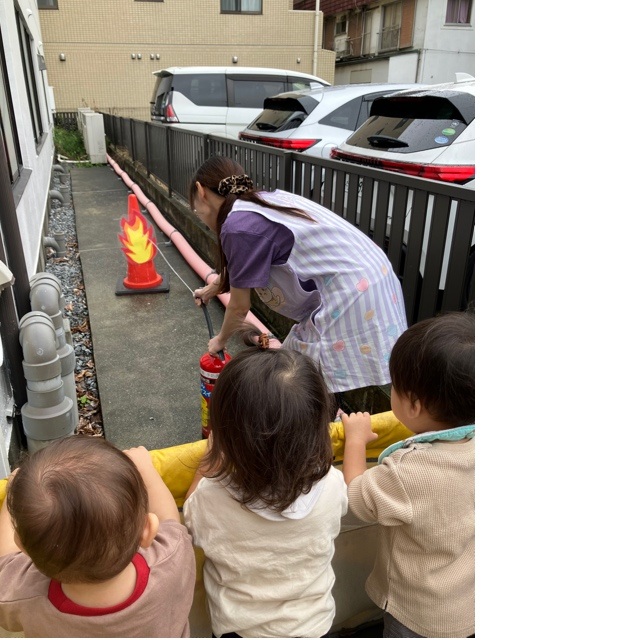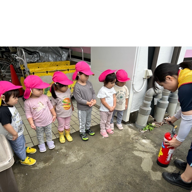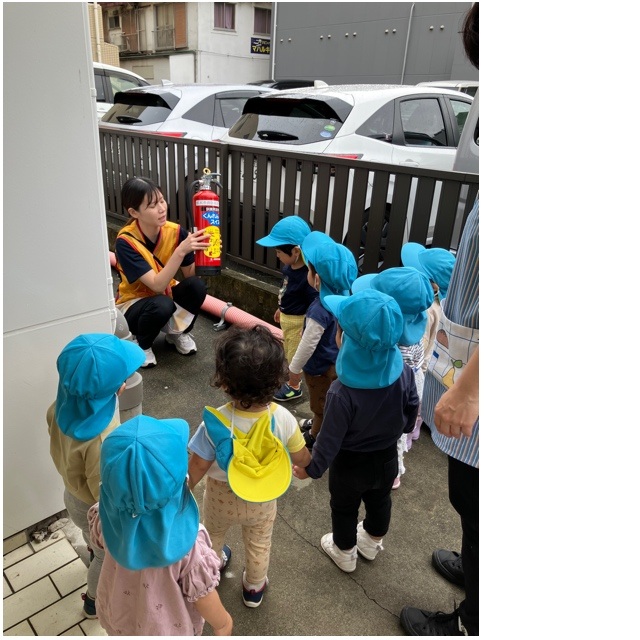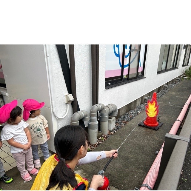 両手でしっかり口と鼻を覆い煙を吸い込まない練習もみんな上手ですね😊
