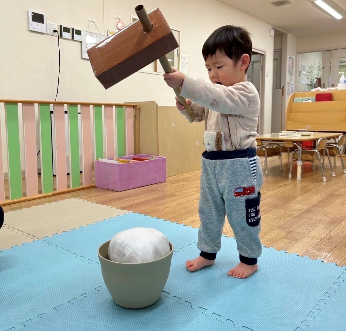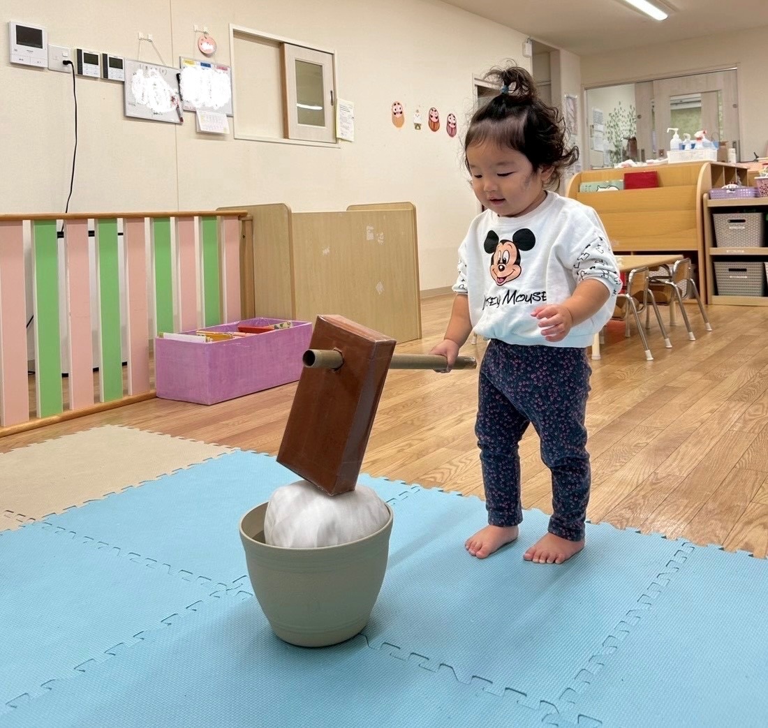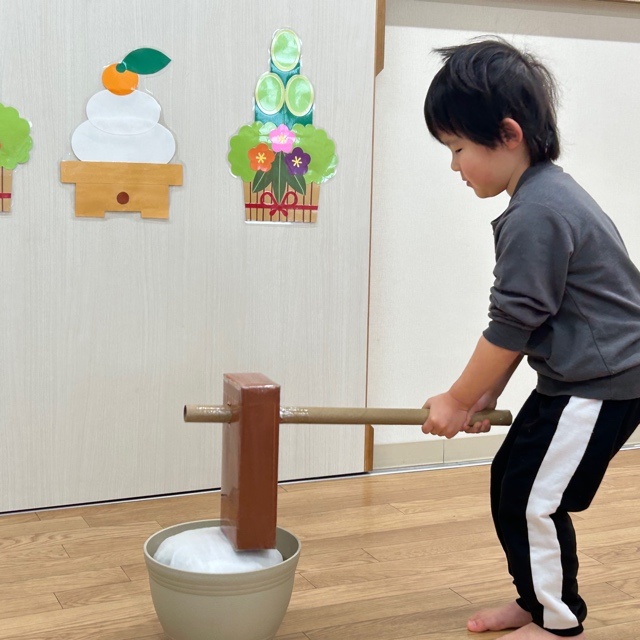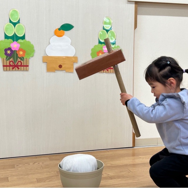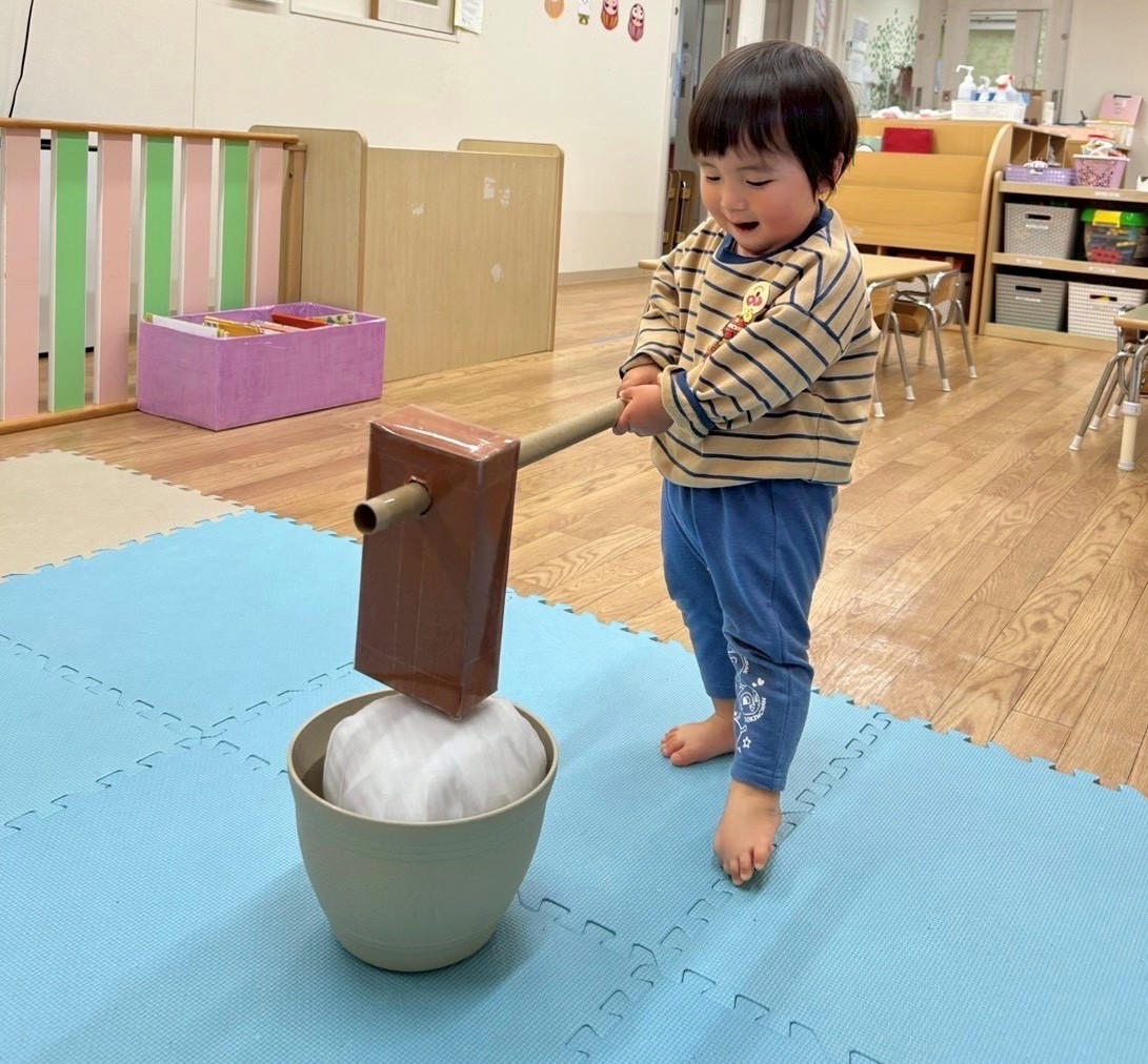 保育園では今年もお餅つきごっこを先生方が計画してくれましたよ‼️