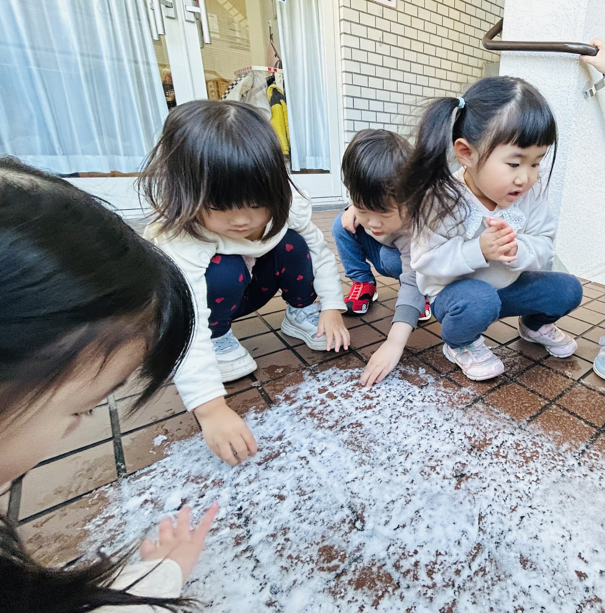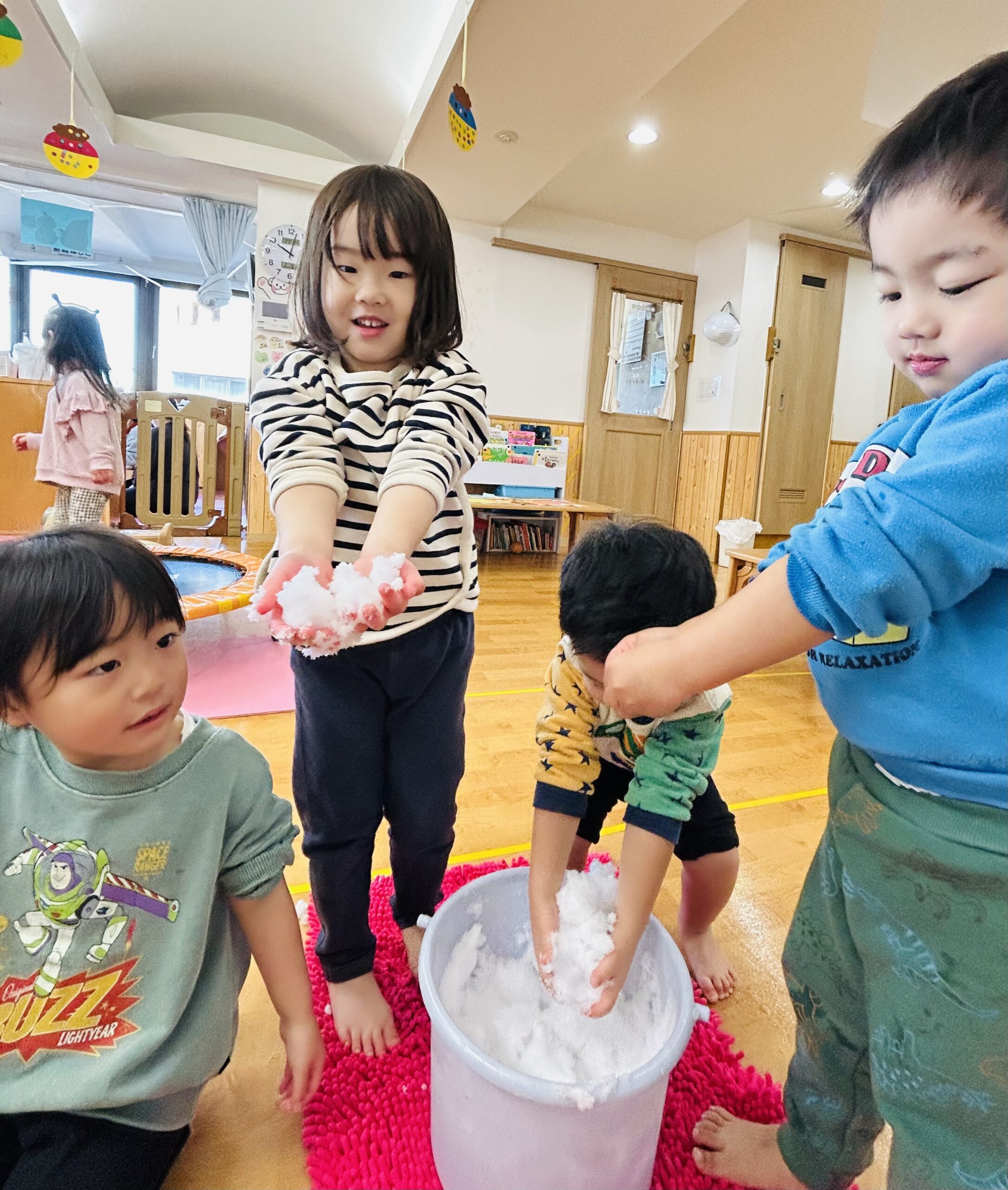 2026年02月10日 雪遊び❄️ 先週末は神奈川でも積もるほどの雪が降りましたね🌨️ そこで、昨日今日と各クラスで雪遊びをしました☃️ 残っている雪を探しに外に出たり、 バケツに雪を持ってきてお部屋で触ったりもしました! ふわふわの雪が、ギュッと握るとカチカチになることも発見 時々お湯で手を温めながら、長い時間楽しみましたよ⛄ 産まれて初めて雪遊びをするお友達もいました。 冬ならではの遊びを満喫したこどもたちです❄